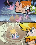 His debut appearance was in the lone Cemetery Hills chapter, "Geekboy Homecoming". During the chapter, as Panty shoots Corset, a large blue light emerges from the sky.